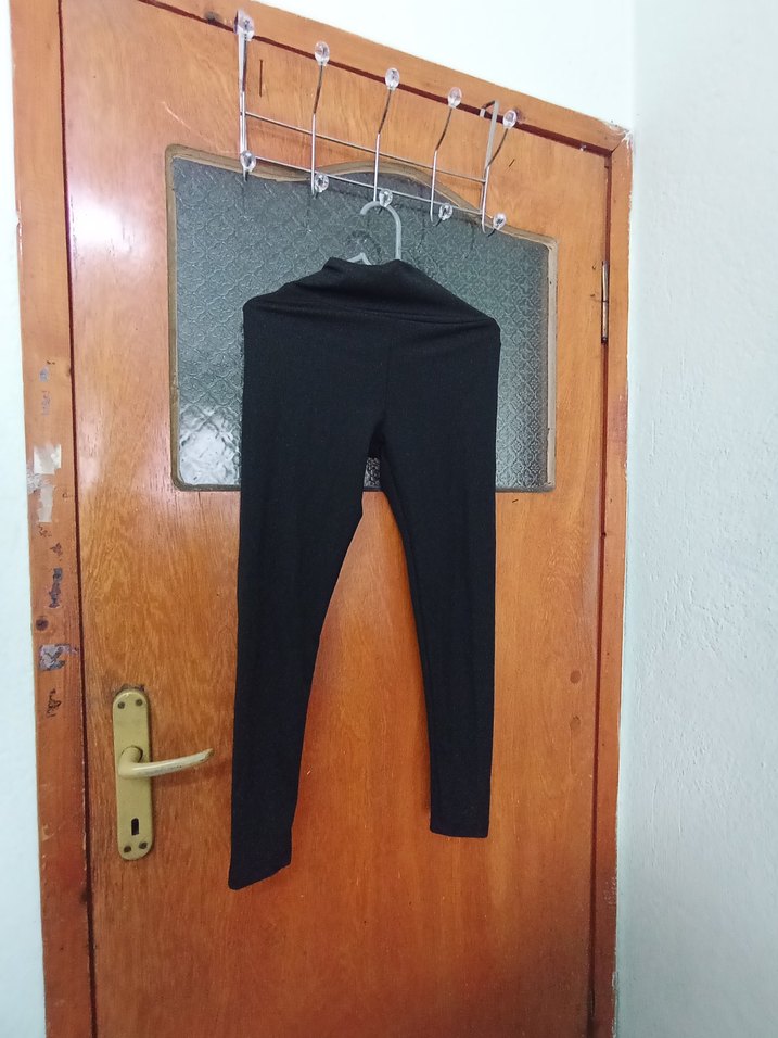 Siyah, elastik bel bantlı, midi boy, yumuşak ve sıcak kumaştan yapılmış kadın taytı, günlük kullanıma uygundur.