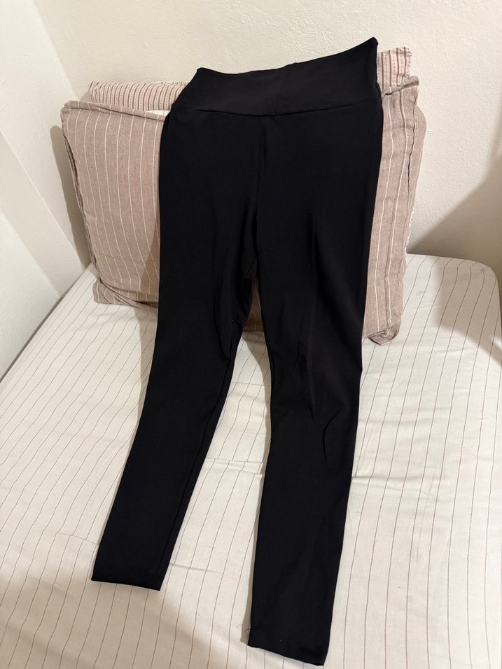 Normal midi boyda, esnek sentetik kumaştan yapılmış siyah kadın taytı, günlük rahat kullanım için uygundur.