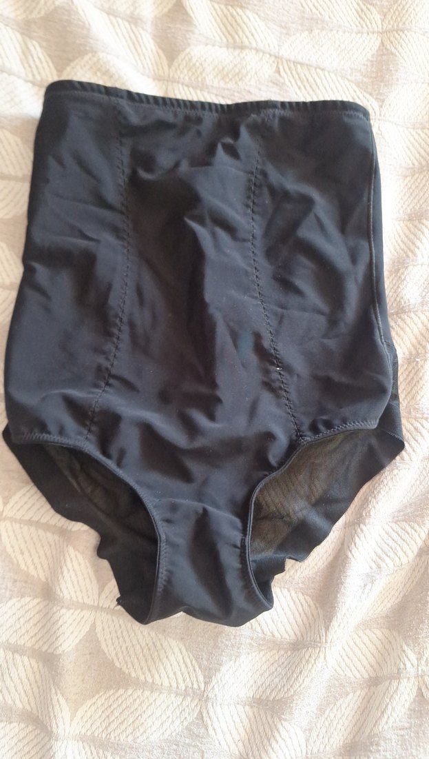 Düz siyah, yüksek bel, midi uzunlukta kadın iç çamaşırı. Vücuda oturan kesimi ve rahat dokusuyla öne çıkar.