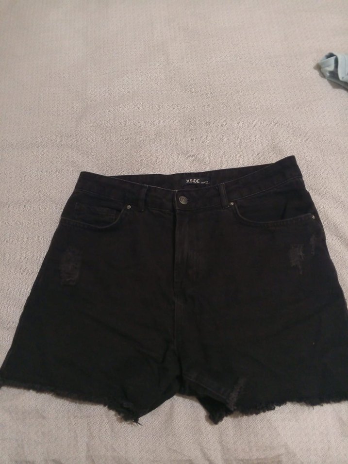Siyah renkli, bol kesim mini denim şort. Rahat ve günlük sokak tarzı için uygundur. Zahmetsiz şıklık sunar.