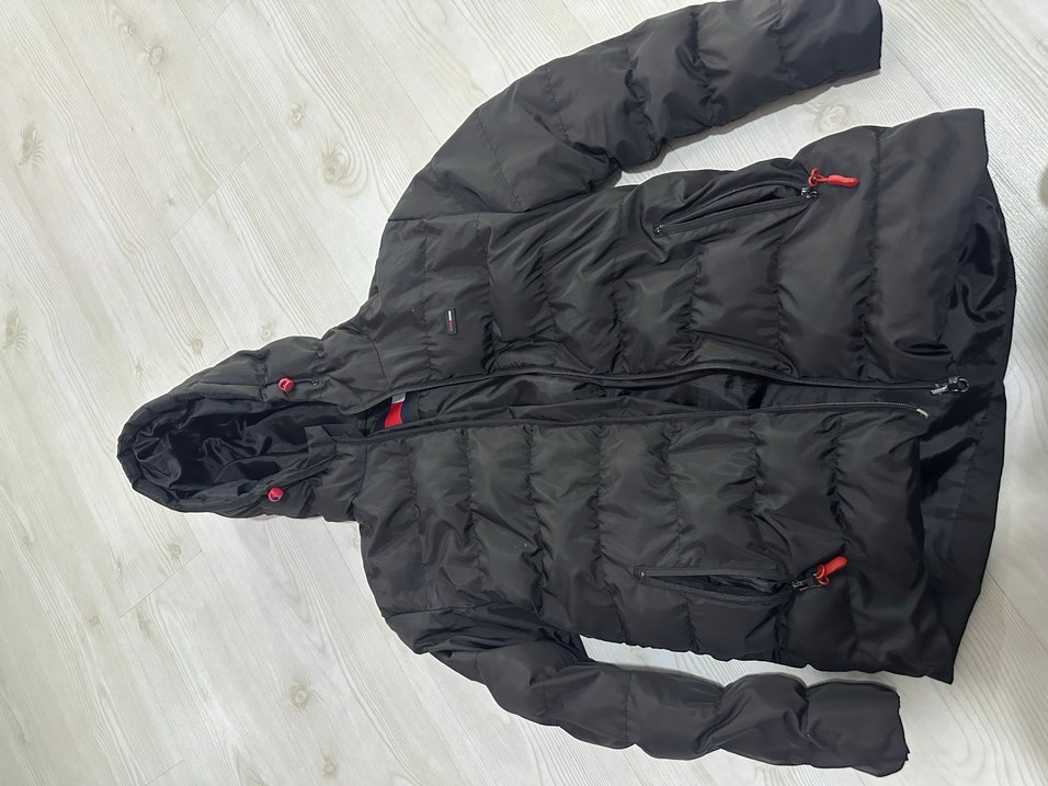 Siyah renkli, kapüşonlu, fermuarlı ve uzun kollu kadın kışlık mont. Orta boy ve düz desensiz, rahat ve sıcak kumaştan üretilmiştir.