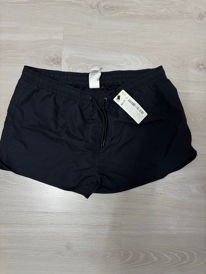 Siyah renkli, vücuda oturan mini yüzme şortu, plajda rahat ve şık bir görünüm sunar. ️