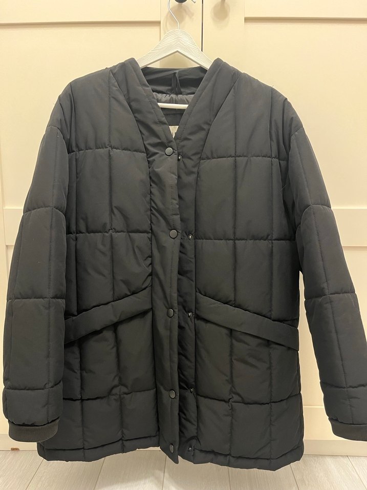 Düğmeli, siyah renkte kadın mont, normal midi boyda ve uzun kolludur bir kez kullanıldı iyi durumda defosu veya herhangi bir şeyi yoktur