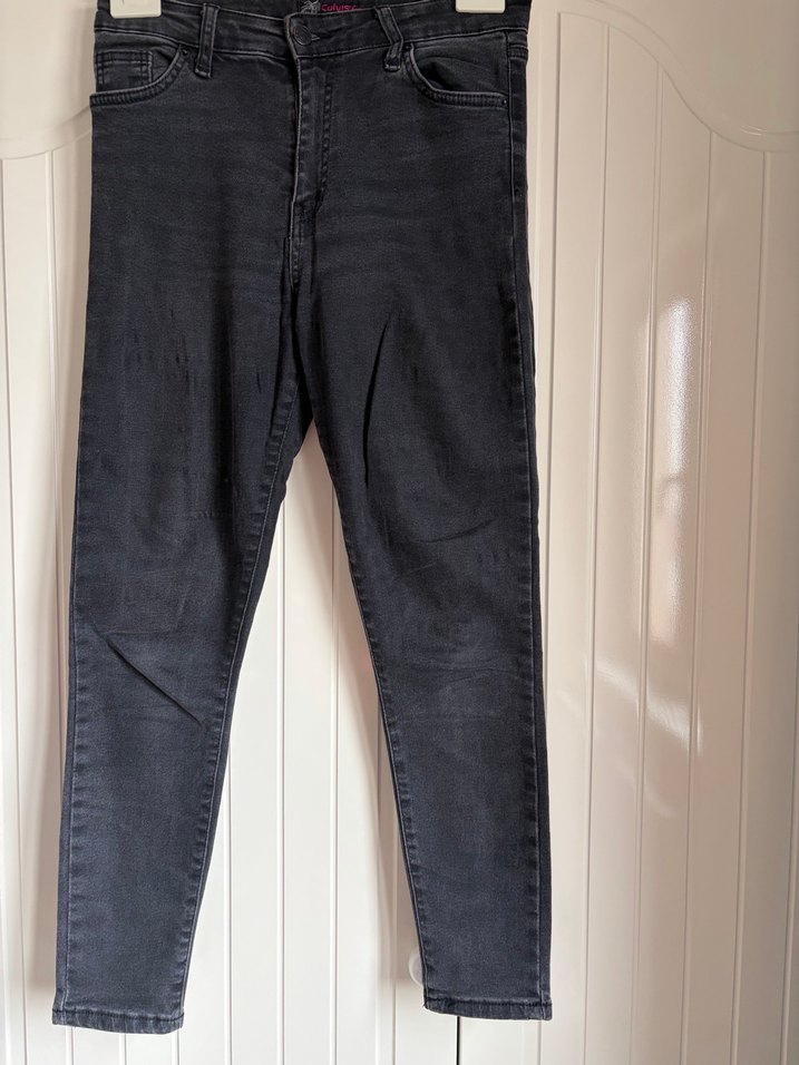 Siyah renk, dar kesim ve normal boyda denim jean. Desensiz tasarımıyla günlük kullanıma uygun, sade ve şık bir görünüm sunar.