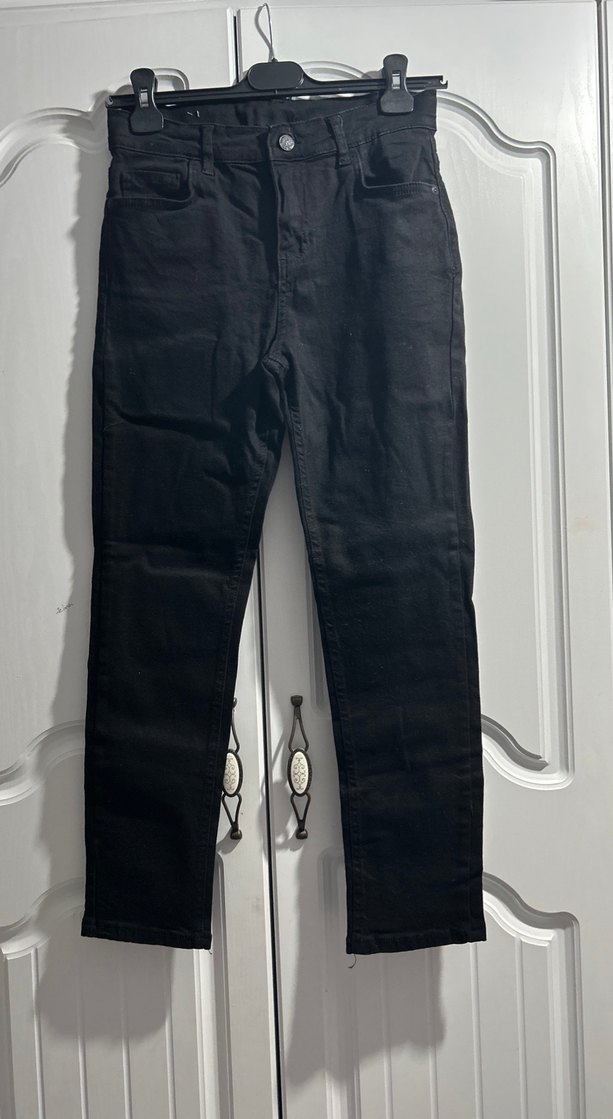 Siyah renk, normal boy, regular fit kadın denim pantolon. Günlük kullanım için rahat ve şık bir tasarıma sahip.