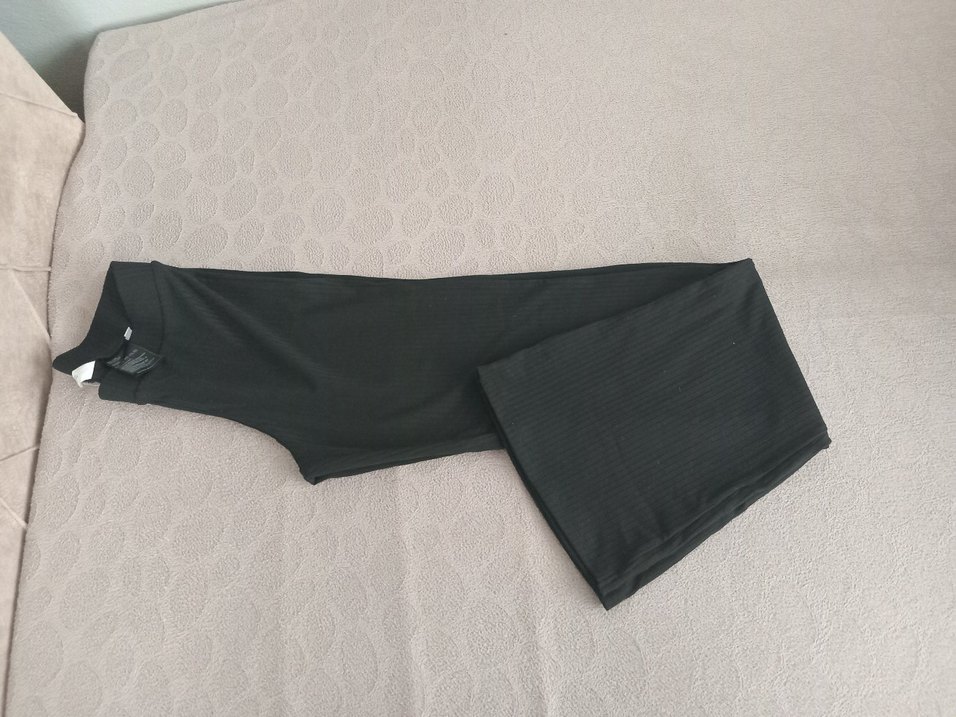 Siyah renkte, esnek bel bantlı, normal boy midi kesim, sentetik kumaştan kadın pantolonu. Günlük kullanıma uygun sade ve normcore tarzda.