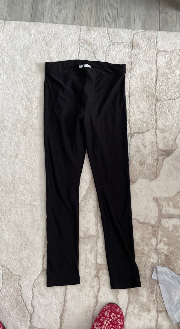 Siyah, düz, sentetik kumaştan yapılmış, ofis için uygun, sokak stiline uygun dar kesim kadın taytı.
