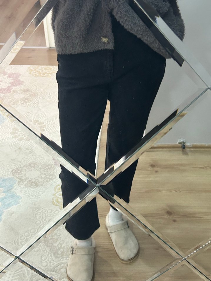 Gri renkli, normal kesim ve midi boy kot pantolon, minimal tarzıyla günlük kullanıma uygun rahat bir şıklık sunar. Taşlı bir modeli var ve taşlarında dökülme yok. Boy:170 Kilo:55