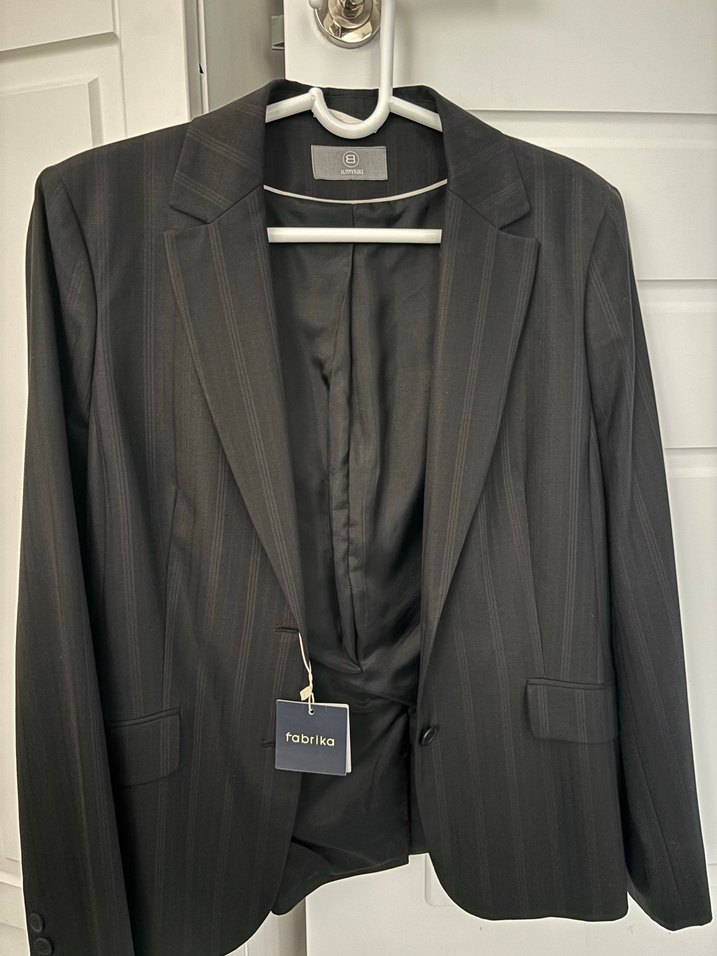 Siyah, düğmeli kadın ofis blazeri, satenimsi kumaş, uzun kollu ve normal boydadır. Klasik zarafet ve normcore stilini yansıtır.