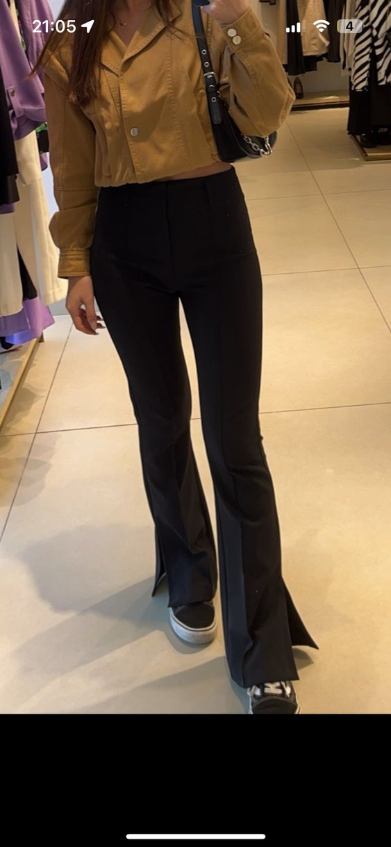 Siyah Kadın Ofis Kesim Yırtmaçlı İspanyol Paça Pantolon