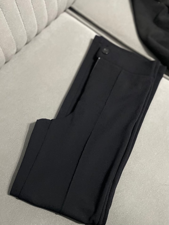 Siyah, orta boy, fermuarlı, düz tasarımlı kumaş pantolon. Ofis için uygun, sentetik kumaştan üretilmiş rahat kesim.
