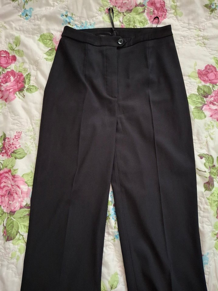 Siyah parlak kumaştan üretilmiş, düğmeli tam boy kadın pantolon. 1 kez kullanıldı. çok siyah pantalonum var ihtiyaç. marka temsilidir. 34-36 bedenlere uygun