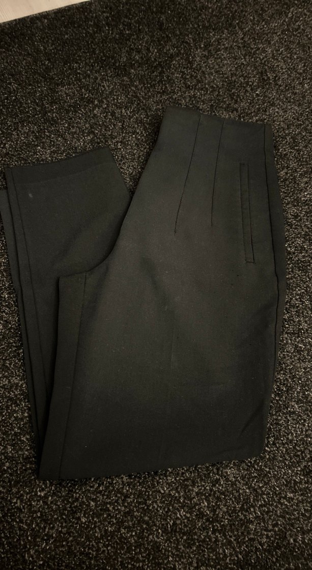 Siyah kumaştan, regular fit ve midi boyda, fermuarlı detaylara sahip kadın ofis pantolonu. Şık ve modern bir görünüm sunar. Paçasını yaptırmak gerekir o yüzden fiyat uygun