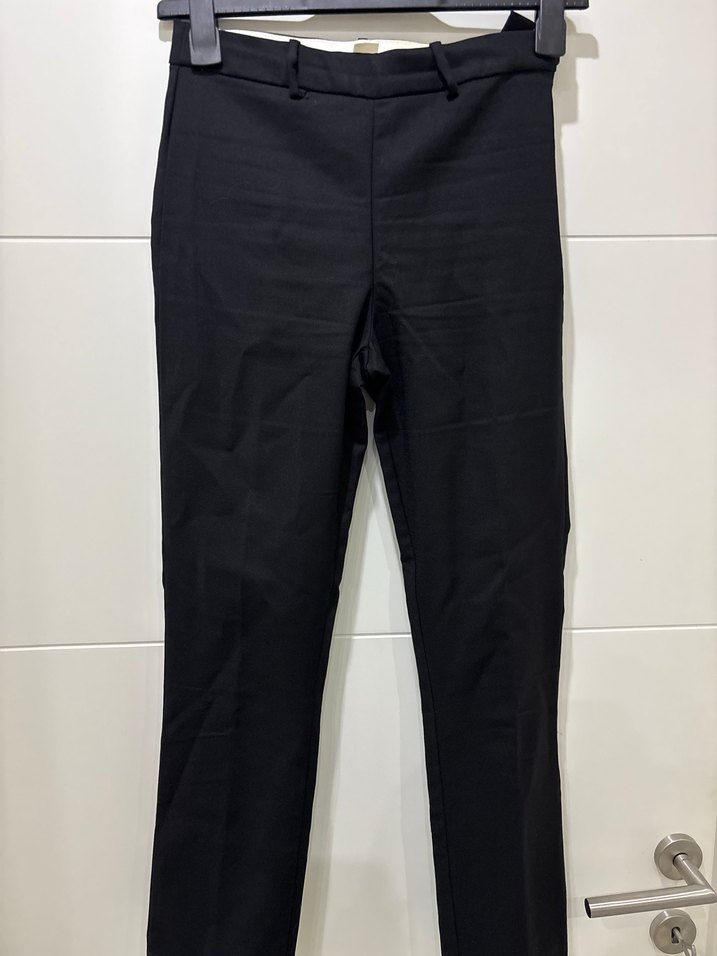 Siyah kumaştan üretilmiş, midi boy ve regular fit kadın pantolon. Ofis için uygun, düz ve sade tasarıma sahip, rahat ve şık bir model.
