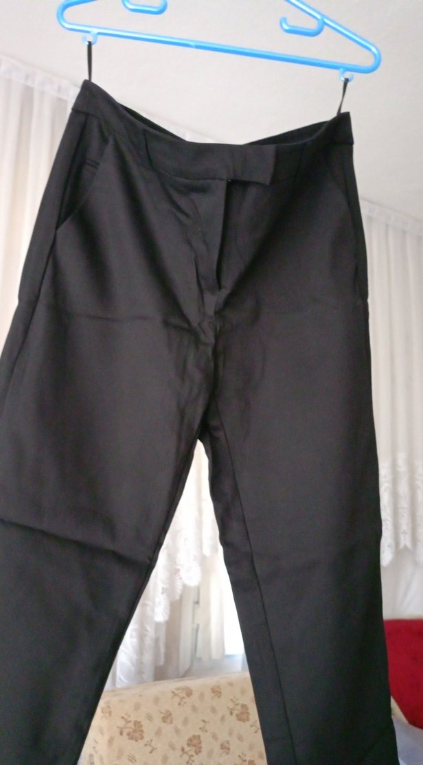 Siyah, midi boy, normal kesim, ipeksi kumaştan kadın ofis pantolonu. Rahat ve şık görünüm sağlar.