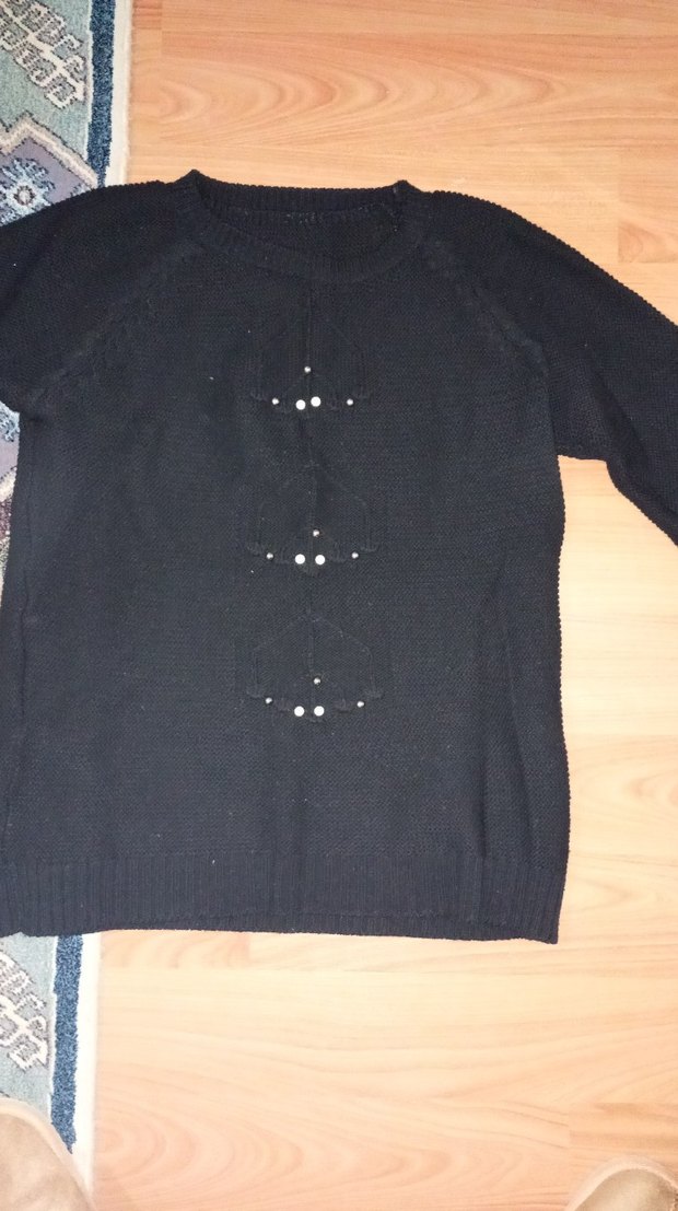 Siyah renkli, yuvarlak yakalı ve uzun kollu örgü kazak, bol kesimiyle rahat ve gotik tarzda günlük kullanıma uygundur.
