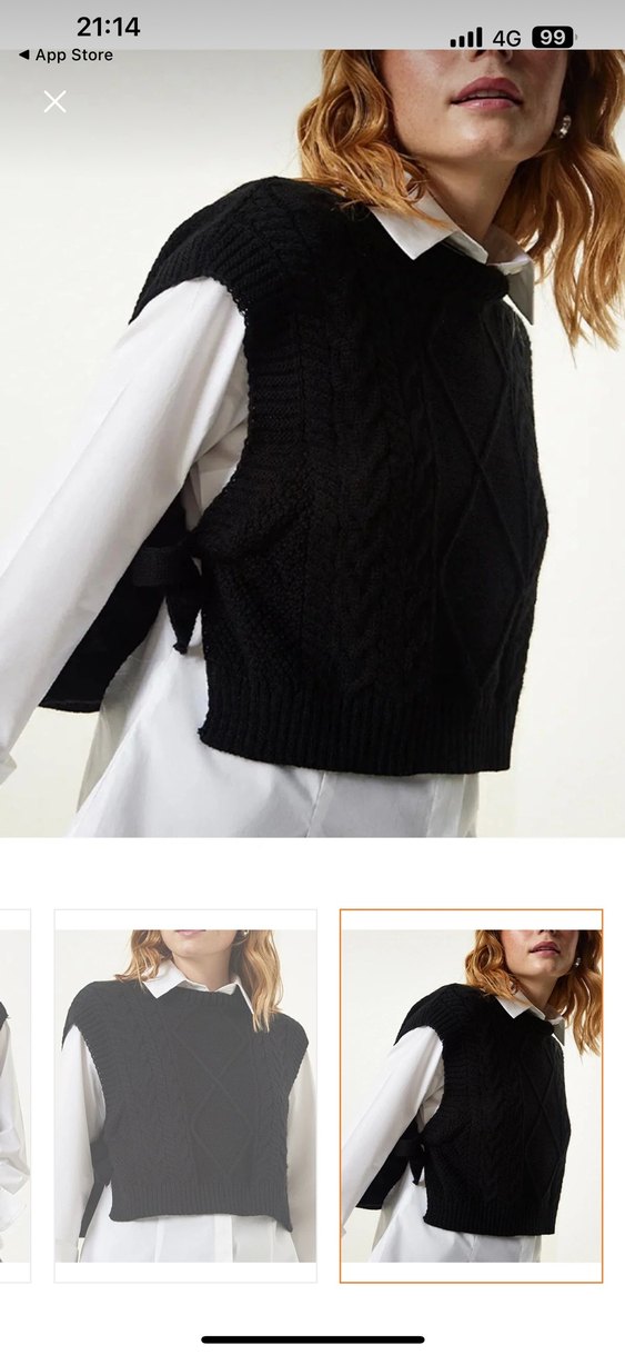 Siyah renkli, örgü dokulu, bisiklet yaka ve kolsuz tasarıma sahip, rahat kesim kadın süveter. Günlük kullanıma uygun, rahat ve şık bir parça.