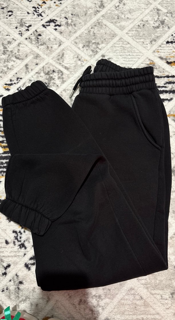 Yumuşak ve sıcak kumaştan, elastik bel ve ceplerle tasarlanmış siyah oversize sweatpant, günlük sokak stili için uygundur.