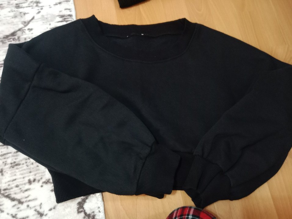 Siyah renkli, yuvarlak yakalı ve uzun kollu, rahat kesim kadın sweatshirt. Yumuşak ve sıcak kumaştan yapılmış, gündelik kullanıma uygun şık bir parça.