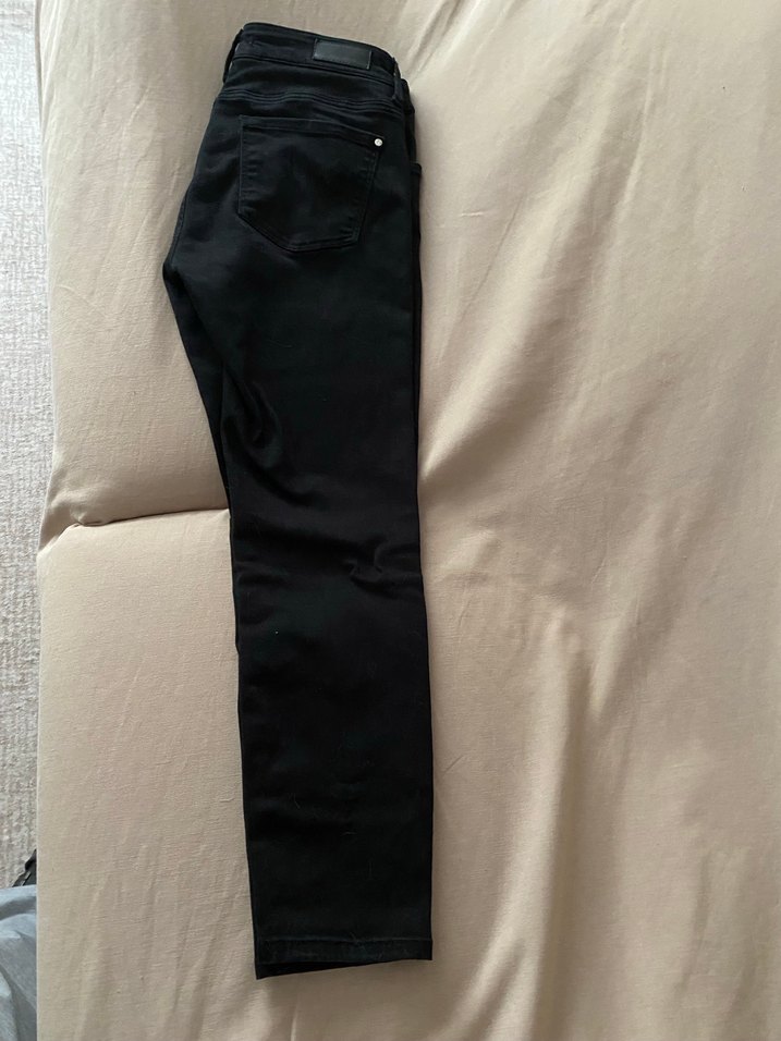 Siyah midi uzunlukta, regular fit denim kadın pantolon. Günlük kullanıma uygun, rahat ve şık bir görünüme sahiptir. Beden 28/25