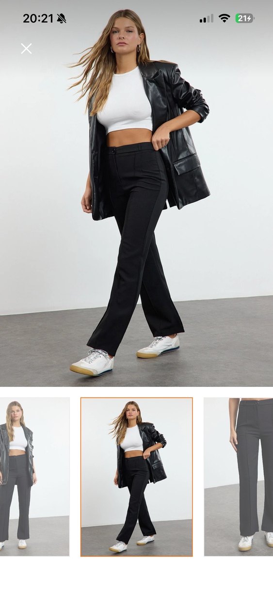 Siyah kadın pantolon çok küçük bi kusuru var hafif ipi çıkmış onun dışında bişeyi yok 36 beden bir kaç kez giydim