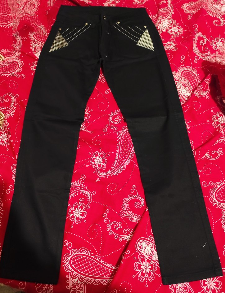Siyah, sentetik kumaştan yapılmış, regular fit ve midi boy sokak stili kadın pantolonu. Ceplerinde payetli desen detayları bulunur, günlük kullanım için uygundur. ✨ 13 yaş için uygundur