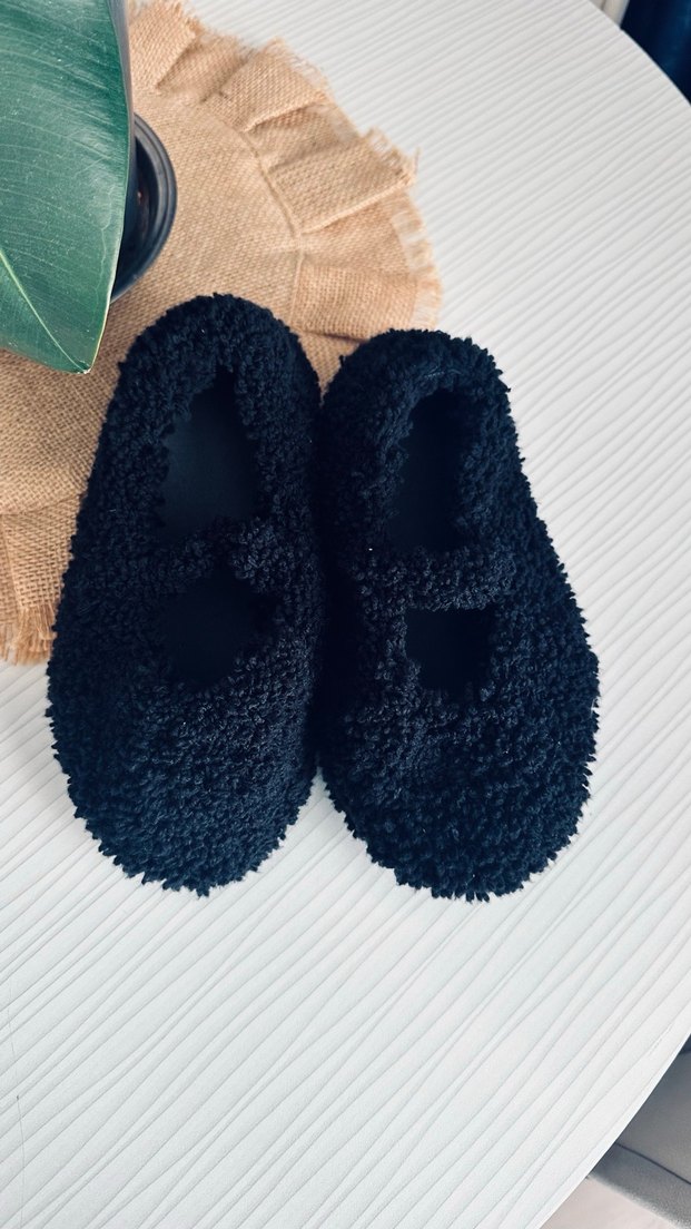 Siyah Kadın Peluş Cırt Cırtlı Terlik