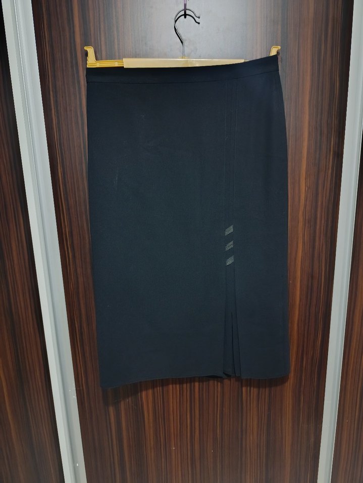 Siyah, pilili ve ipeksi dokulu uzun kalem etek, normal kesimle ofis için sade ve desen içermeyen tasarıma sahiptir. ✨