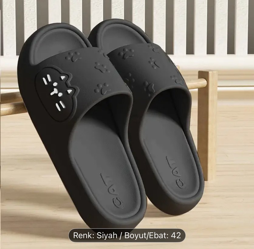 Siyah renk kedi desenli terlik. Kauçuk malzemeden üretilmiş, günlük sokak stili için uygun. kalıbı 41dir. Etiketsiz geldi yurtdışından.