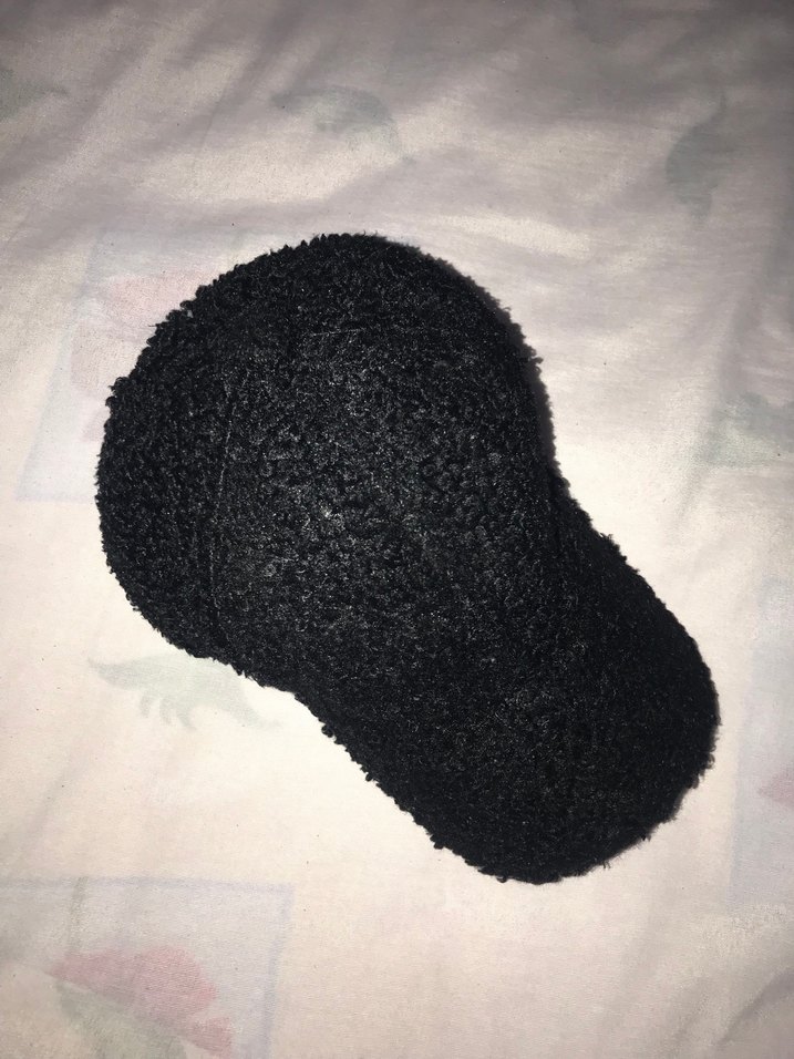 Siyah kadın şapka, yumuşak polar kumaştan üretilmiş ve ayarlanabilir Velcro bant içerir. Rahat dokusu sade ve temel tarzlara uygundur.