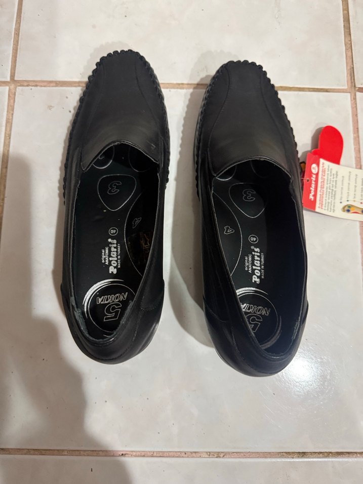 Siyah renkli, kauçuk tabanlı ayakkabı ve desen içermeyen şık bir tasarıma sahiptir. %100 dedi polaris 5 Nokta Etiketli hiç giyilmedi