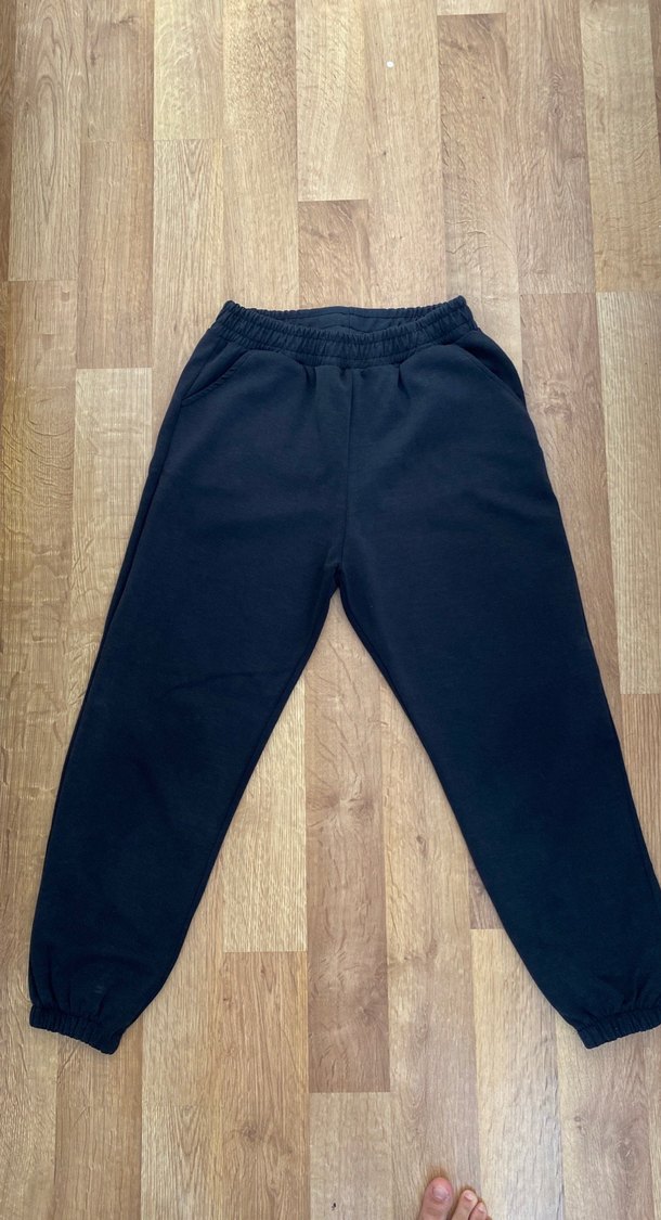 Siyah renkte, rahat kesim ve normal boyda, yumuşak ve sıcak kumaştan kadın eşofman altı. Yan cepler ve lastikli paçalarla trend şık görünüm sağlar.