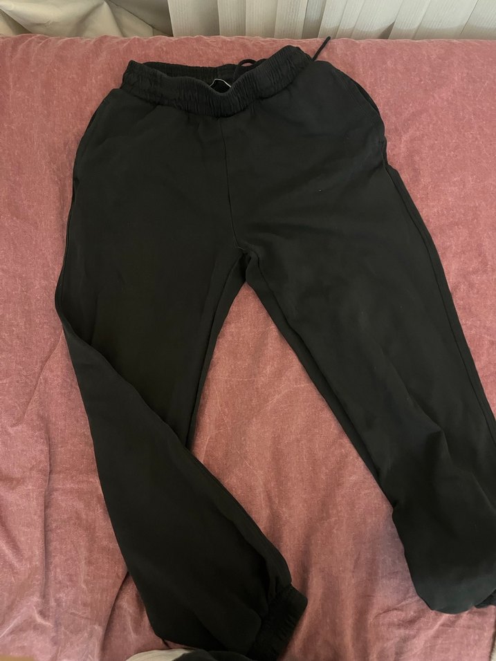 Siyah, rahat kesim, midi boy, yumuşak ve sıcak kumaştan kadın eşofman altı. Günlük kullanım ve sokak stili için uygundur. ÜRÜN ORJİNAL BERSHKA FAKAT ARKASINDA DEFOSU VAR.