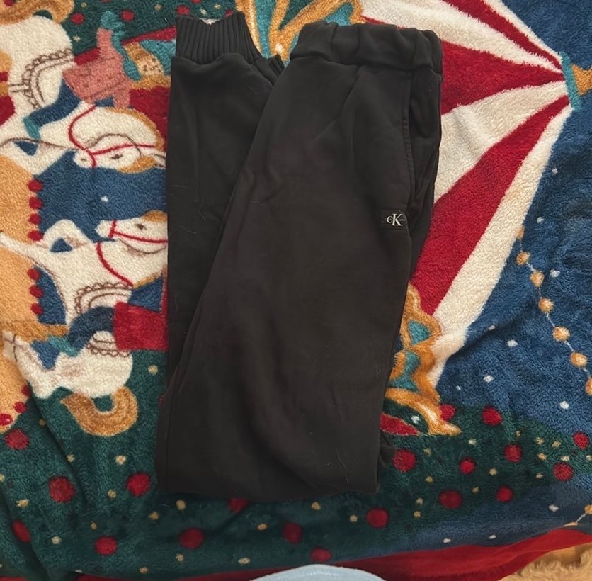 Siyah, rahat kesim, normal uzunlukta, yumuşak ve sıcak kumaştan kadın eşofman altı. Cırt cırt detaylı, gündelik kullanıma uygun. arkasında küçük silik bir leke var fotoğrafta mevcut.