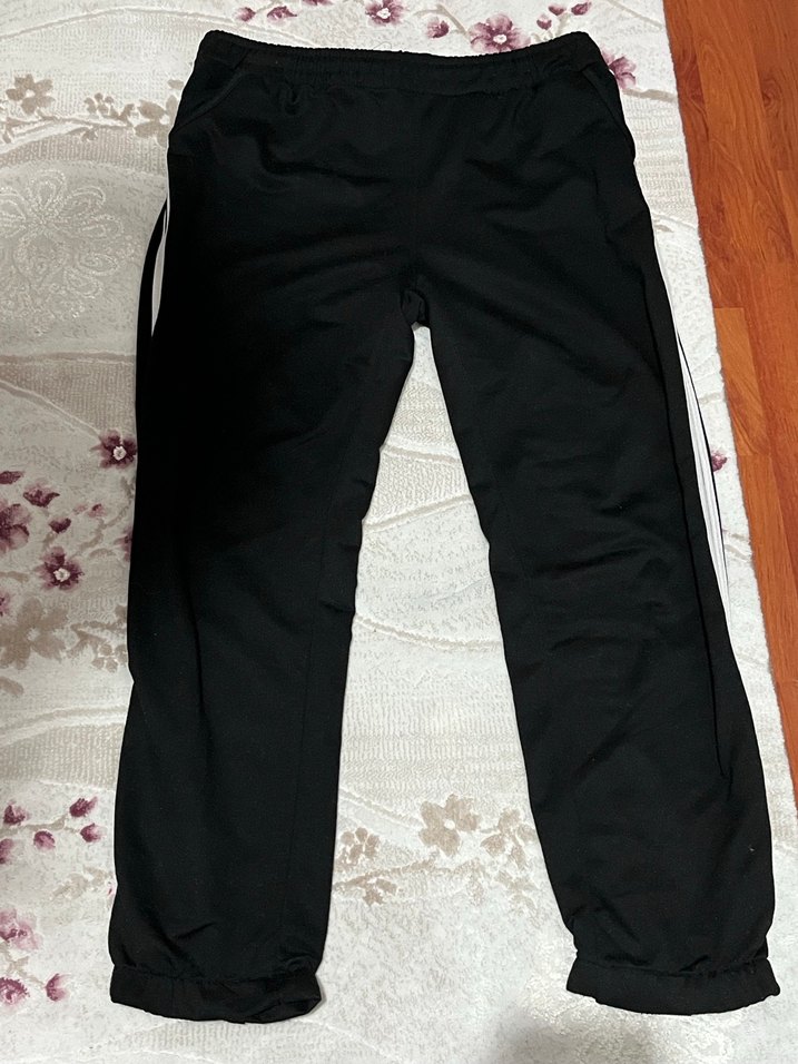 Siyah renkte, rahat kesim ve lastikli bel detayına sahip, sentetik kumaştan üretilmiş günlük kullanıma uygun kadın eşofman altı.
