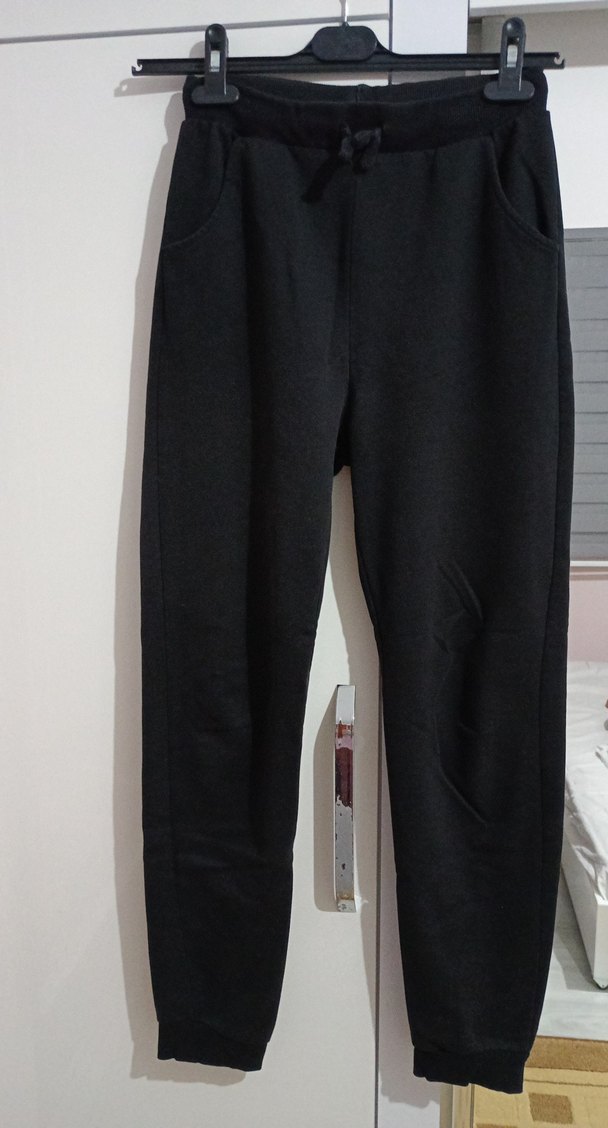 Yumuşak ve sıcak kumaştan, cep detaylı, midi boy, rahat kesim siyah kadın eşofman altı. sadece son fotoğrafta gösterdiğim gibi çok kuzum bir yırtık vsr sma belli olmuyor bile gerçekten zaten bu sebepten dolayı da fiyata yansıtacağım bu durumu.