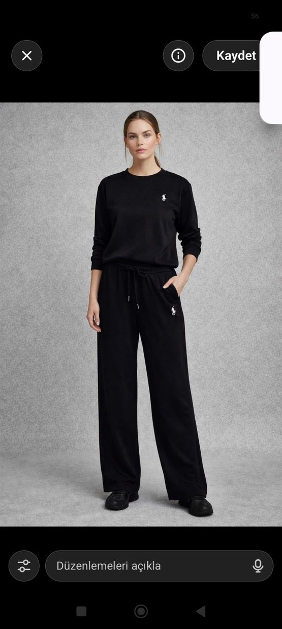 Siyah renkli, rahat kesim, uzun kollu ve bisiklet yaka kadın eşofman takımı. Yumuşak ve sıcak kumaştan, günlük kullanıma uygun. s m