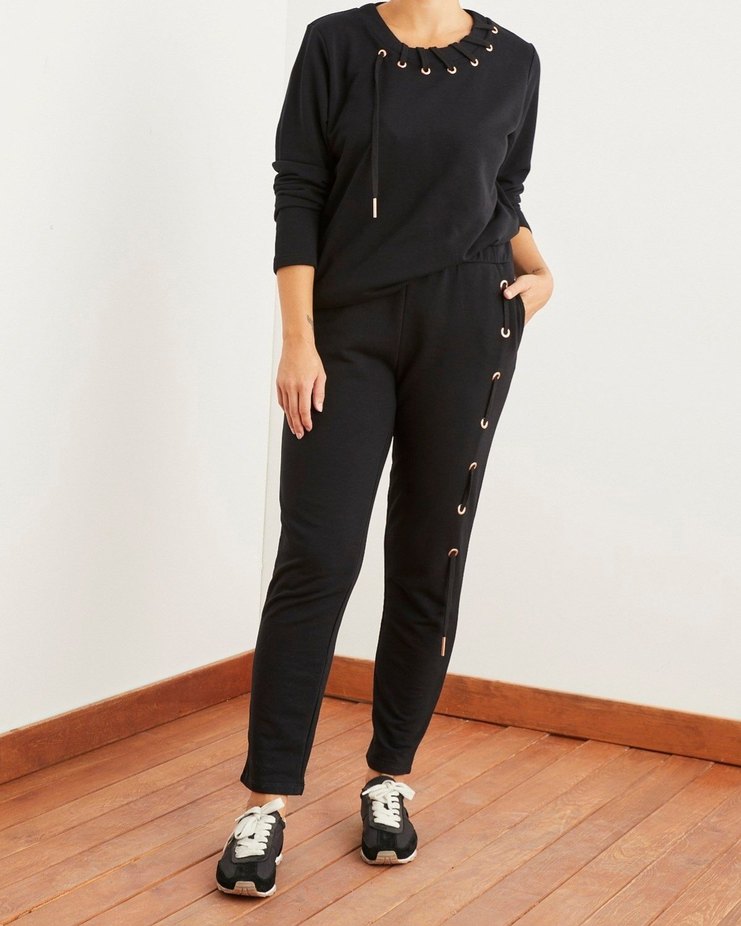 Siyah Kadın Rahat Kesim Eşofman Takımı