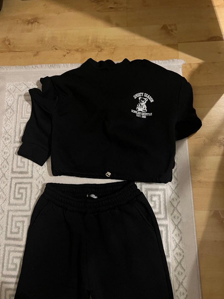 Yumuşak ve sıcak kumaştan, rahat kesim siyah eşofman takımı. Polar. Hiç giymedim olmadı çünkü :( günlük rahat kullanım için uygundur. Üst kapşonlu ve belden lastikli fotoğrafta mevcut