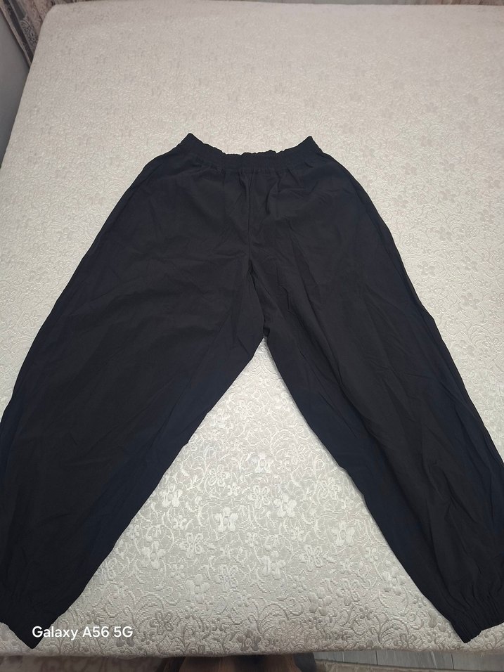 Siyah, rahat kesim, orta boy kumaş pantolon. Yumuşak ve sıcak dokusuyla dış mekan ve sokak stiline uygun. NOT ÜRÜNÜN BEDEN ETIKETI RAHATSİZ ETTIĞUNDEN KESMIŞTIM BEDEN MARKA ETIKETI YOKTUR