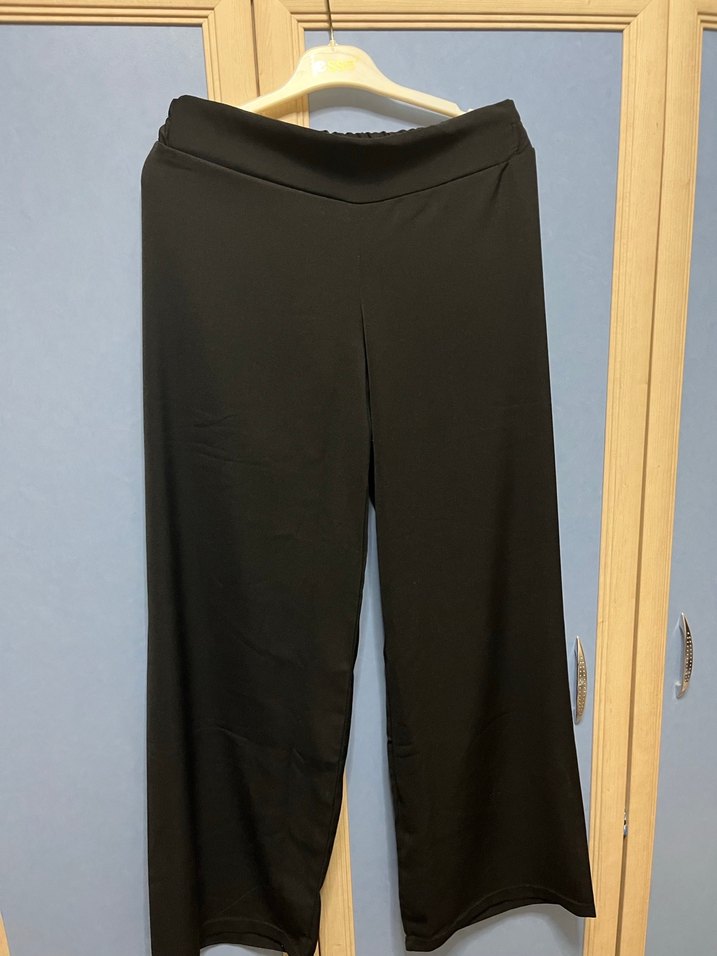 Siyah, bol kesim ve ipeksi dokulu kadın kumaş pantolon. Rahat günlük kullanım ve sokak stiline uygun, zahmetsiz şıklık sunar.