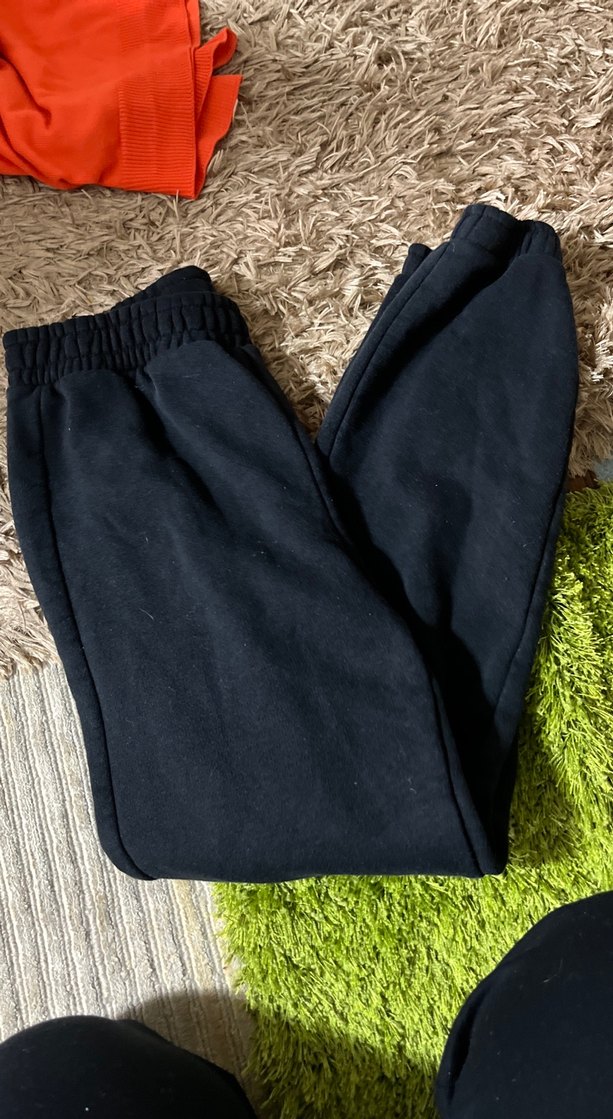 Siyah, rahat kesim, midi boyda kadın sweatpant. Yumuşak ve sıcak kumaş, cırt cırt detaylı, günlük kullanım için uygun.