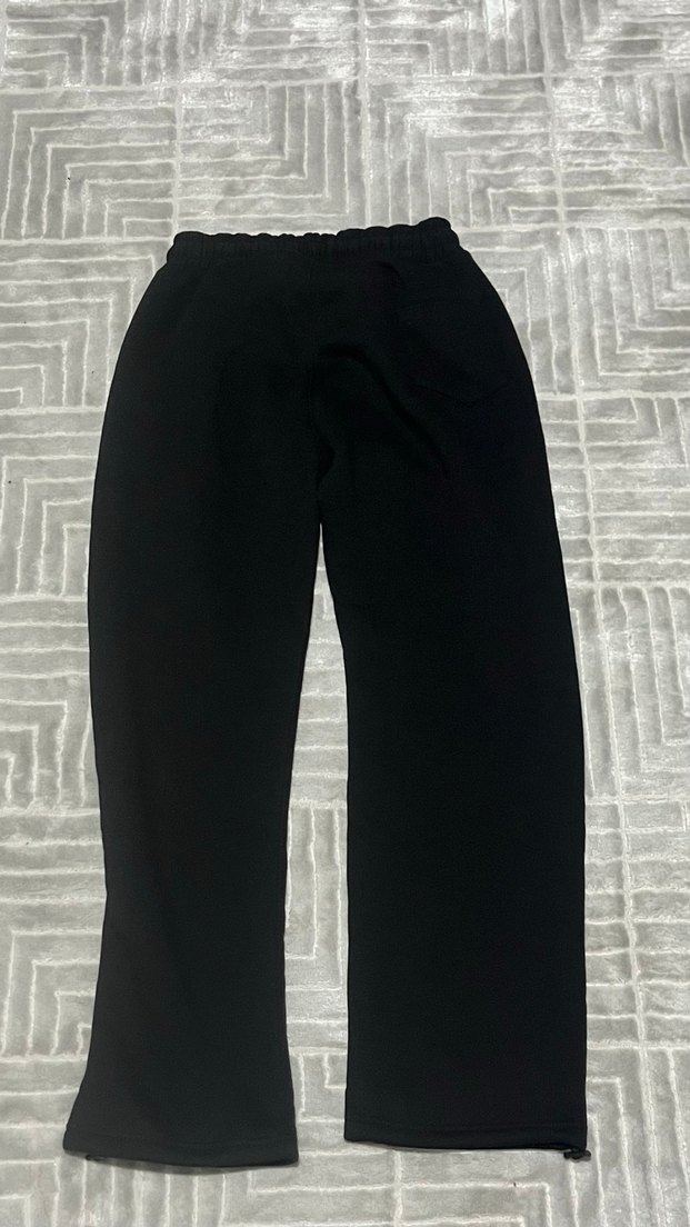 Siyah, rahat kesim, yumuşak ve sıcak kumaştan kadın sweatpant, günlük kullanıma uygun rahat ve şık görünüm sunar.