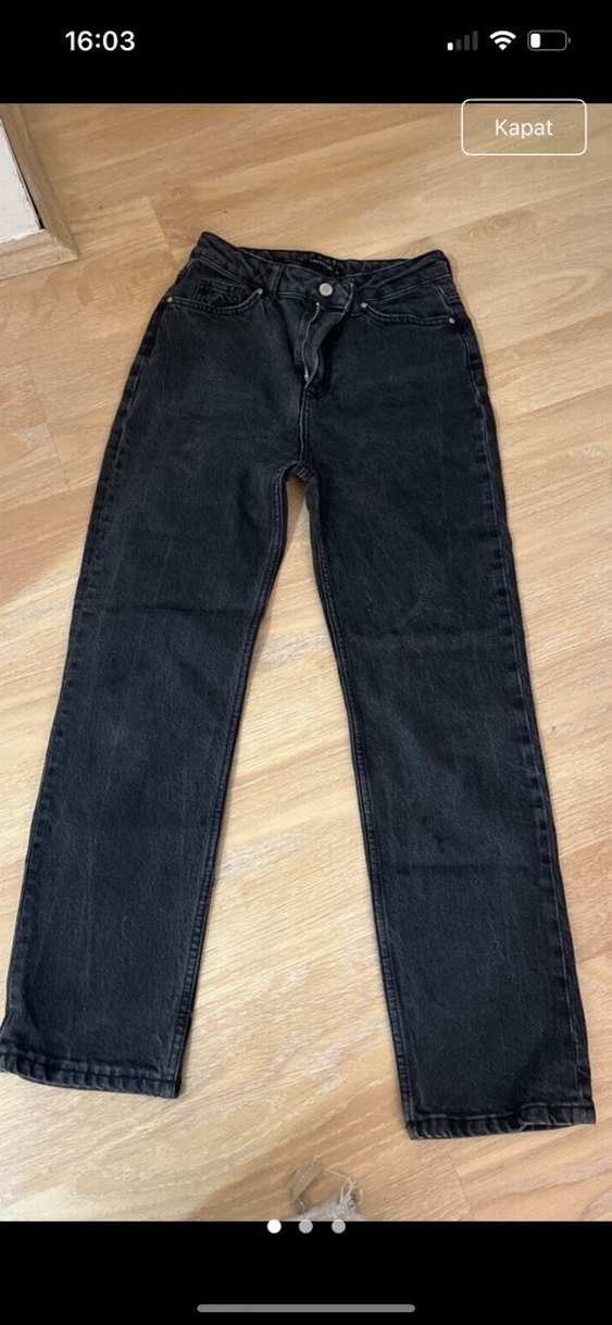 Siyah renkli, regular fit kesime sahip normal boyda denim pantolon. Günlük kullanım için rahat ve şık bir sokak stili sunar.