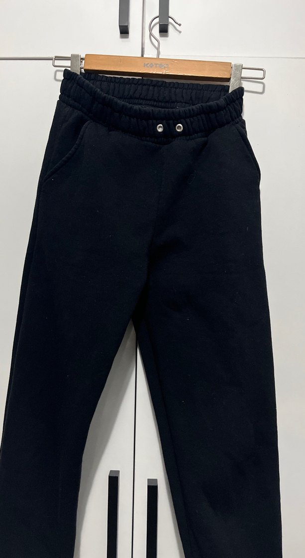 Siyah, normal boyda ve regular fit kadın eşofman altı, yumuşak ve sıcak kumaştan. Trendy casual ve zahmetsiz şıklık sunar.