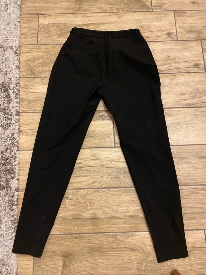 Siyah, regular fit ve midi boyda kadın kumaş pantolon. Pürüzsüz sentetik kumaştan üretilmiş, günlük kullanım için rahat ve şık bir seçenek. Koton -36 beden