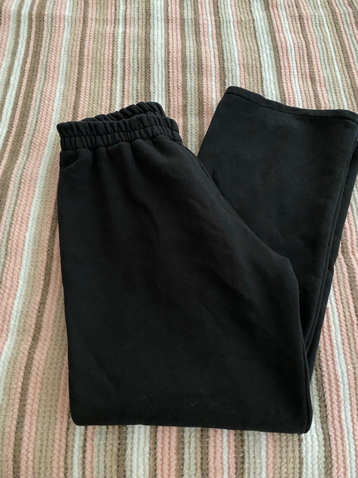 Siyah renk, pamuk kumaştan kadın salaş, rahat lastikli bel ve desensiz sade tasarımıyla günlük kullanım için uygundur.
