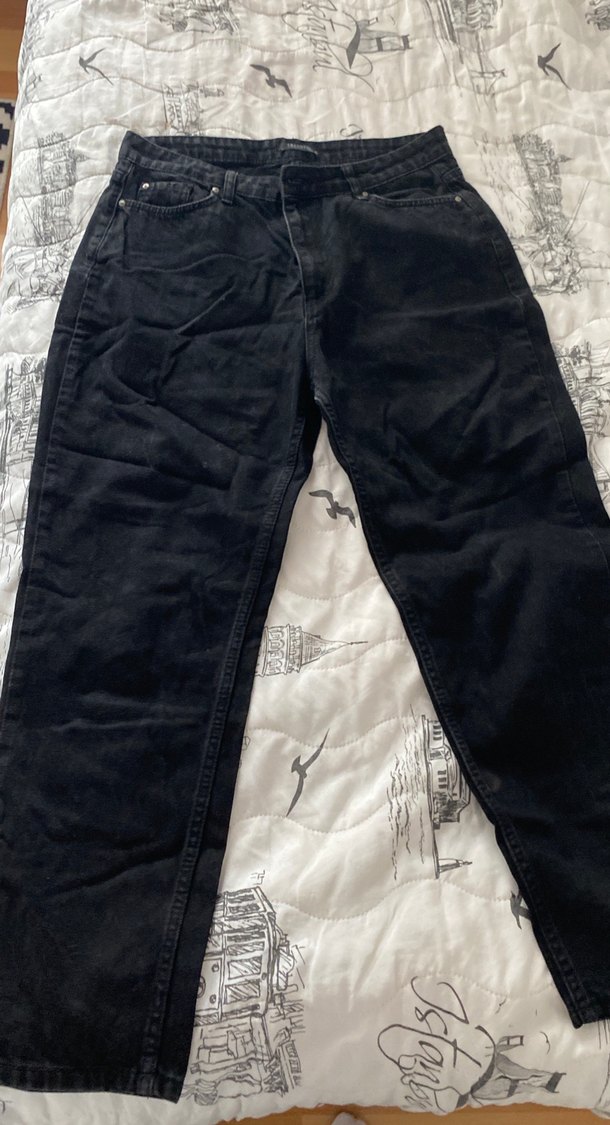 Kadınlar için siyah renkli, salaş kesim midi boy denim jean, rahat sokak stili ve günlük kullanım için uygundur.