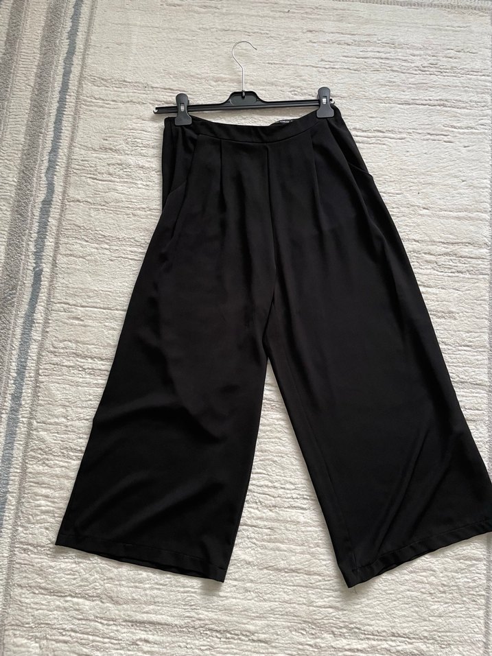 Siyah, salaş kesim, uzun, desen içermeyen, minimal ve zahmetsiz şıklık sunan pantolon.
