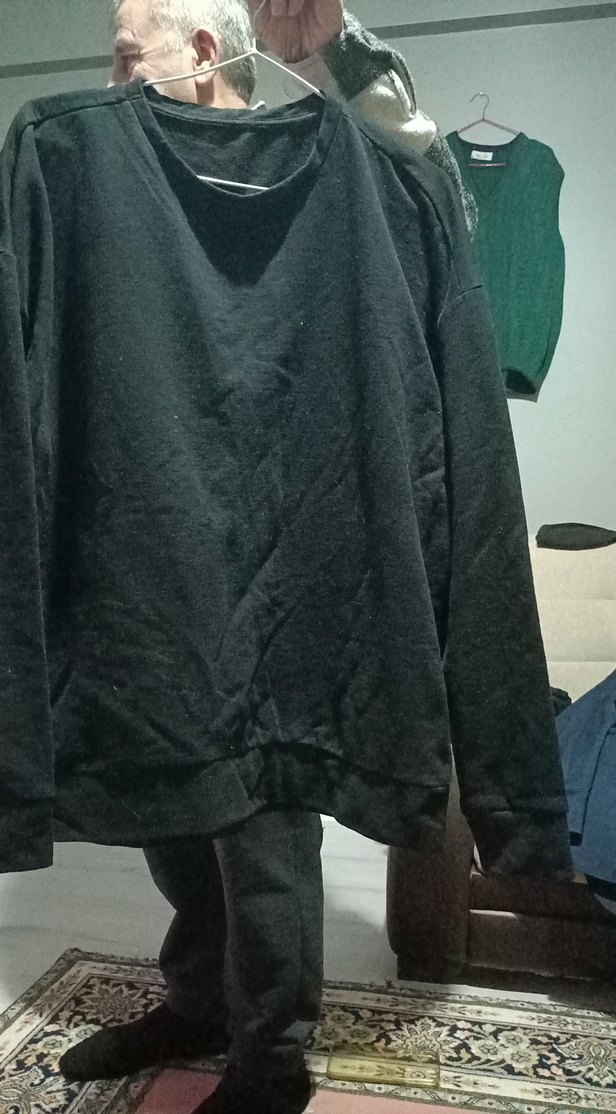 Siyah renkli, uzun kollu ve yuvarlak yaka kadın sweatshirtü, yumuşak keten kumaştan üretilmiş olup salaş ve rahat bir kesime sahiptir. Günlük rahat kullanım için uygundur.